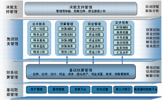 面對外部市場種種壓力和集團內(nèi)部管理困境,金蝶K/3集團財務(wù)管理解決方案從集團財務(wù)集中、全面預(yù)算、資金管理、財務(wù)報告等核心業(yè)務(wù)進行統(tǒng)一整合,通過集團基礎(chǔ)數(shù)據(jù)平臺、業(yè)務(wù)流程的規(guī)范、內(nèi)部控制的實時處理來加強集團基礎(chǔ)管理,實現(xiàn)集團資源整合、流程優(yōu)化,發(fā)揮集團的整體效益,實現(xiàn)市場價值最大化。