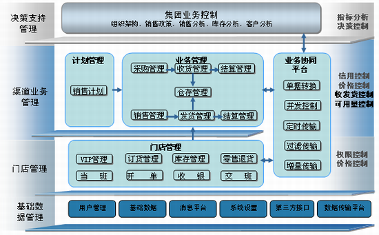 金蝶K/3集團分銷管理解決方案對集團總部與下屬分支機構(gòu)間的業(yè)務(wù)及各分支機構(gòu)間的業(yè)務(wù)往來進行管理,提供統(tǒng)一業(yè)務(wù)模板,統(tǒng)管或分管基礎(chǔ)資料,機構(gòu)間數(shù)據(jù)傳遞與單據(jù)轉(zhuǎn)換,整體業(yè)務(wù)控制和分析等操作管理功能。分銷管理系統(tǒng)有集中式、分布式、混合式三種部署方式。